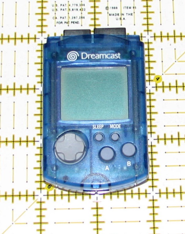 | Features: | The front of the controller has an analog stick on the left side. Below the analog stick is a D-Pad. In the center of the bottom of the front of the controller is the start button, shaped like a triangle pointing upward. On the right side are four action buttons. The top one is green and labeled "Y", the right one is blue and labeled "B", the bottom one is red and labeled "A", and the left one is yellow and labeled "X". All four buttons have small indicator bumps. In the middle of the front is a window which will expose the screen of a VMU plugged into the controller, which sometimes displays something related to the game being played. Above this window is the spiral Dreamcast logo. In the top of the controller are two ports for VMUs, Memory Cards, Rumble Packs, and other peripherals. There is a small marking indicating slots "1" and "2". On the handgrips on the underside of the controller are unlabeled trigger buttons. The wire inexplicably comes out of the bottom of the controller, facing away from the TV and presumably the console, although there is a small notch in the memory card port enclosure which can hold the wire and direct it toward the console. Embossed into the back side of the controller is the following: "SEGA HKT-7700 SEGA ENTERPRISES, LTD. MADE IN INDONESIA" Beneath that is a sticker which has the CE and FCC compliance logos and the following text: "Product covered under one or more of the following U.S. Patents 5,525,770;5,396,030;Japanese Patent No. 2870538 (Patents pending in U.S. and other countries.)" |